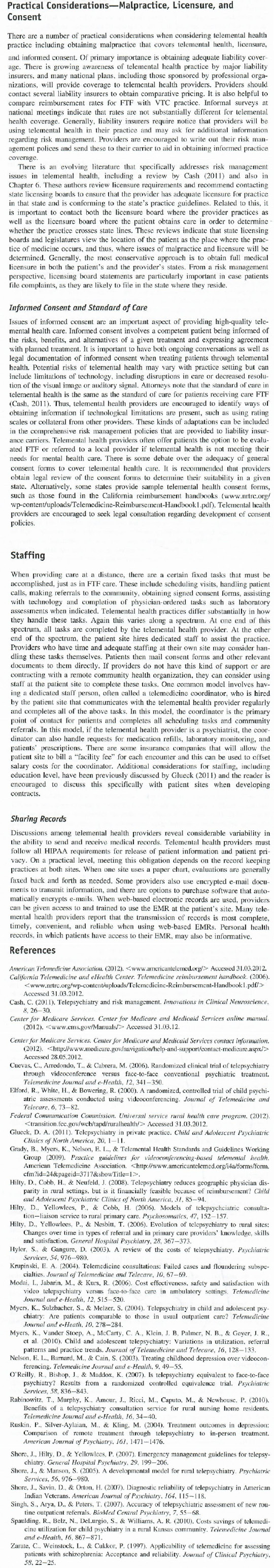Cooper, S. E., & Neal, C. (2015). Consultants’ use of telepractice: Practitioner survey, issues, and resources.Consulting Psychology Journal: Practice and Research, 67(2), 85–99.